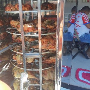 Caruru, vatapá, arroz branco , farofa de dendê, Xinxim de frango ou peixe , molho lambão