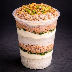 Temaki no copo Serve 1 pessoas Um incrível temaki no copo, recheado por deliciosas camadas de arroz, cream cheese, salmão e cebolinha, coberto por crispy de cebola. Imagem ilustrativa!