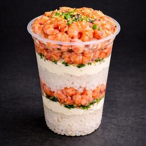 Temaki no copo Serve 1 pessoas Um incrível temaki no copo, recheado por deliciosas camadas de arroz, cream cheese, camarão e cebolinha, coberto por crispy de cebola. Imagem ilustrativa! 400ml