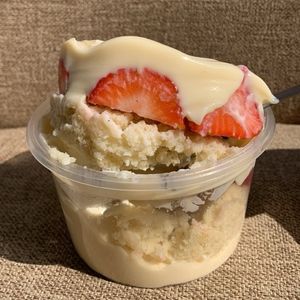 Mousse de ninho,massa branca molhadinha,brigadeiro de ninho e morangos frescos