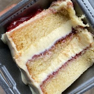 Massa amanteigado molhadinha recheada de doce de leite e ameixas em calda com cobertura em chantininho.