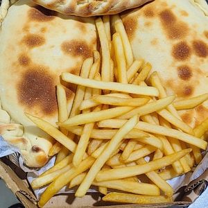 2xtudo( carne queijo presunto ovo bacon calabresa cebola milho ervilha salada) Acompanha 250 gr.batata frita e molhos.