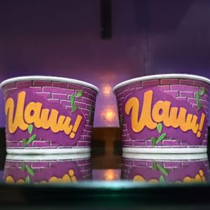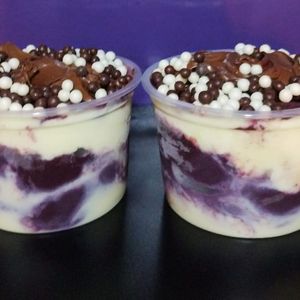Copo de 550 ml com açaí, creme de cupuaçu e creme ninho.
