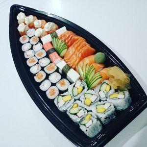 10 sashimis fresco, 6 niguiri salmão, 8 urumaki salmão, 8 hossomak salmão, 4 Joe salmão, 8 hossomak Califórnia, 5 hot holl ,2 temak salmão batido