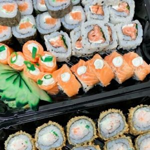 5 sashimis salmão 5 hot cheese 5 Maki salmão Filadélfia 3 Sushi salmão