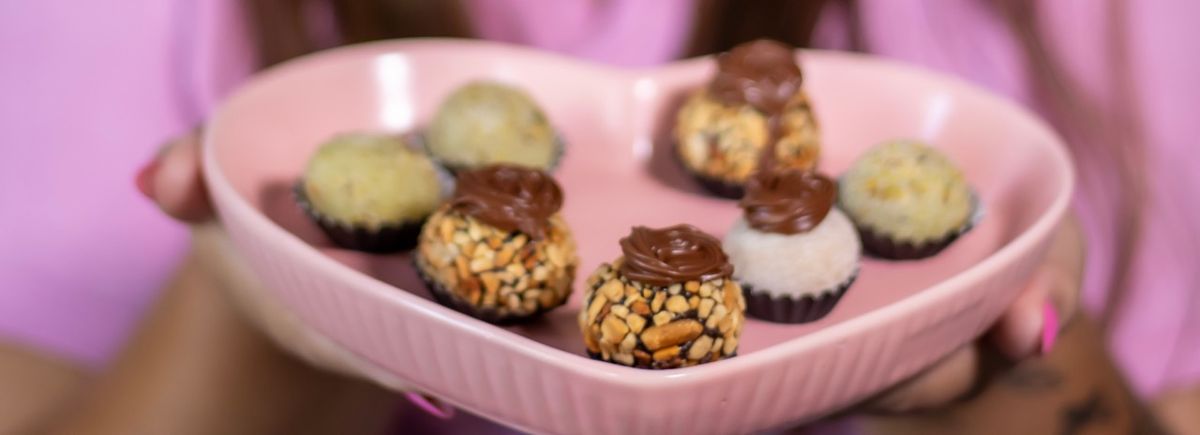 Brigadeiro de ninho ,uva sem caroço, ganache de chocolate meio amargo