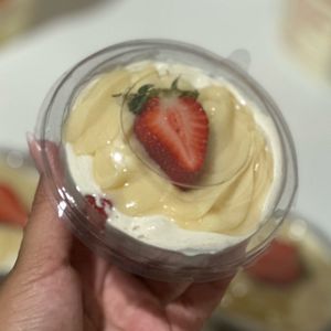 Mousse de ninho , brigadeiro de ninho , bolacha champanhe , e morango