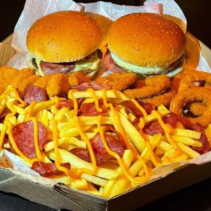2 x-tudo, 6 aneis de cebola, batata M com calabresa e cheddar , 6 nuggets.