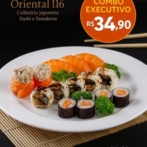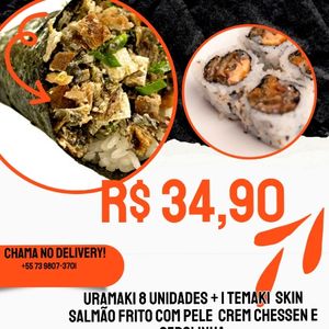 Mais uma opção de combinado, para quem gosta do salmão cru, mas também adora um hot holl Esse combinado contem 10 hot holl 5 niguiri de salmão 8 uramaki de salmão 8 hossomaki de salmão Total 31 peças Qualidade e sabor nesse perfeito combinado