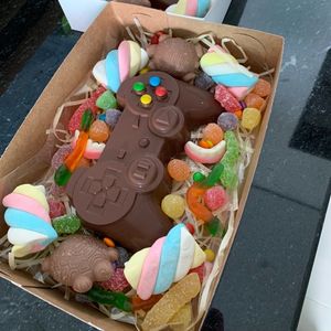 Casca ao leite Recheado com brigadeiro e finalizado com jujubas guloseimas sortidas , casca 150g peso final 250g a 300g