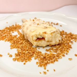 Torta sorvete cremosa com recheio de doce de leite.