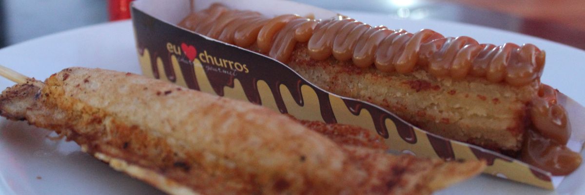 Churros com massa crocante e sequinha, com uma cobertura generosa de doce de leite premium.