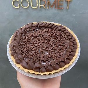 Massa amanteigada com recheio de brigadeiro ao leite bem cremoso . Serve de 6 a 8 fatias e peso final de 500g.