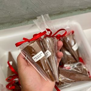 Cestinha de sorvete banhada no chocolate ao leite e recheada brigadeiro ao leite.