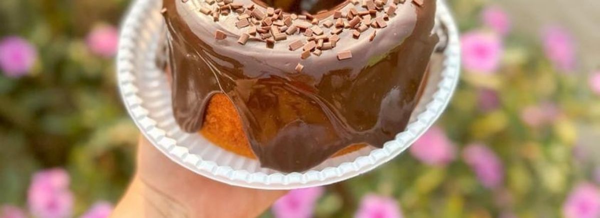 Massa caseira e fofinha com uma cobertura de brigadeiro. Porção individual!