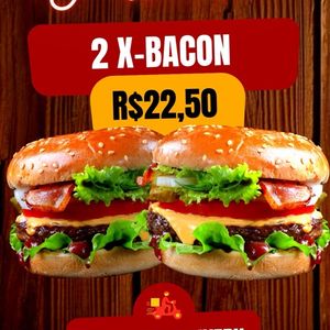 Pão, carne, queijo, bacon, alface, tomate e molho da casa.