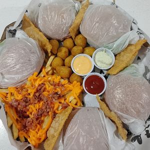 🍔 Dois hambúrgueres artesanais recheados, suculentos e cheios de sabor 🥓 Batata frita crocante com cheddar derretido e bacon douradinho por cima 🥟 Dois pastéis dourados, crocantes e simplesmente irresistíveis 👉 Uma explosão de sabor em cada mordida! Você merece esse combo perfeito! 😍🔥 ---