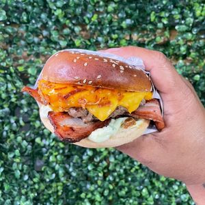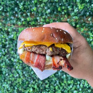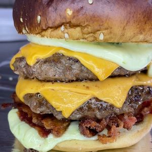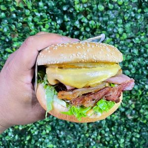 Pão com gergelim, 3 carnes de hambúrguer 56g, 2 ovos, bacon, 3 camadas de cheddar melt. Sabor irresistível!!!