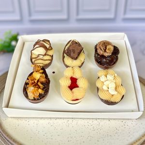 Kit composto por 6 chocotones trufados pequenos (aprox. 160g cada). - 1 Chocotone trufado Pistache; - 1 Chocotone trufado Red velvet; - 1 Chocotone trufado Ninho com morango; - 1 Chocotone trufado Chococaramel; - 1 Chocotone trufado Ninho com Nutella; - 1 Chocotone trufado Crunchtone. Acompanha embalagem presenteável