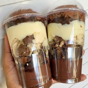 Feito com 2 camadas do nosso recheio de chocolate melken, amendoim torrado, brownie, nutella, chantimousse de chocolate e finalizado com o bombom Ferrero Rocher;