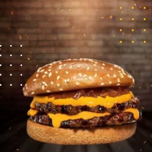 2 hambúrguer blend especial de carne bovina 100g cada, pão brioche selado na chapa, queijo derretido, fatias de bacon crocante, picles, barbecue e mostarda.