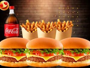 3 Burger Salada artesanal+450g Fritas+Coca 2lt