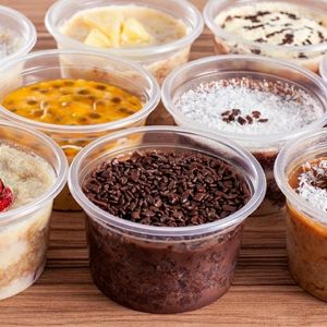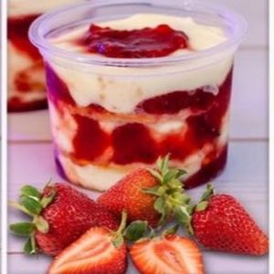 venha saborear os nosso bolo de pote de 250 gramas de leite ninho +massa branca bem molhatinha +morangos frescos cortados e uma delícia e explosão de sabores bolo na medida certa entre massa recheios