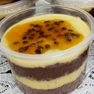 venha saborear no nosso copo da felicidade de 180 gramas .creme de maracuja .geleia caseira de maracuja e suspiros pra decorar e muita refrescancia na medida certa