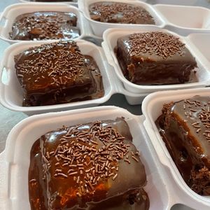 Bolo vulcão de massa branca amanteigada, erupção de recheio de ninho e brigadeiro meio amargo. Serve 8 a 10 pessoas
