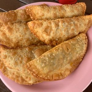 Recheio, pesunto, queijo e orégano. Pastel extra grande , frito na hora.