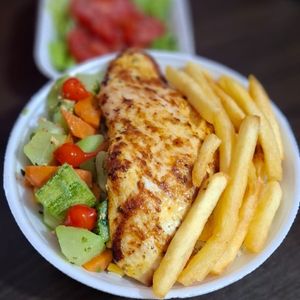 Descubra a intensidade dos sabores do nosso 'A Parmegiana de Frango'. Acompanha um arroz branco soltinho e um feijão cremoso, salada fresca, batata frita e uma deliciosa farofa. Experimente esta delícia e apaixone-se à cada garfada!