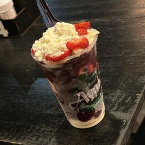 Copo de 300ml com açaí creme de Ninho e leite em pó.