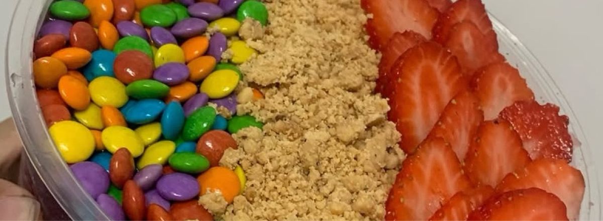 Açaí ,morango,leite em pó,leite condensado , granola e paçoca