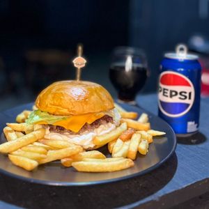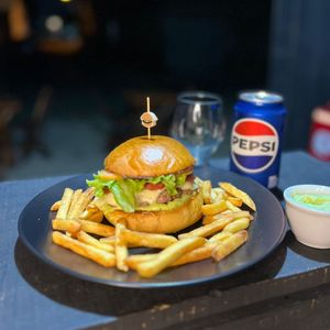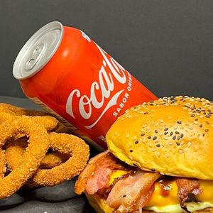 Burguer Bacon + refrigerante 350 ml + grátis 150g de anéis de Cebola