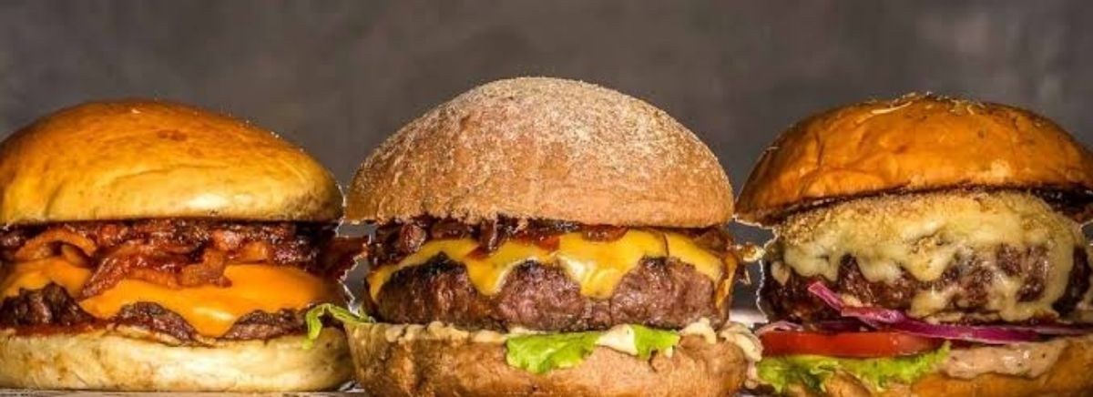 Pão, carne, queijo, bacon, alface picado, tomate, molho especial da casa