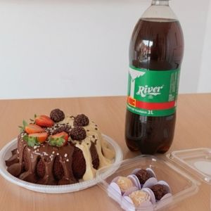 Bolo vulcão duo(ninho e chocolate)1kg,River 2L e 4 brigadeiros.