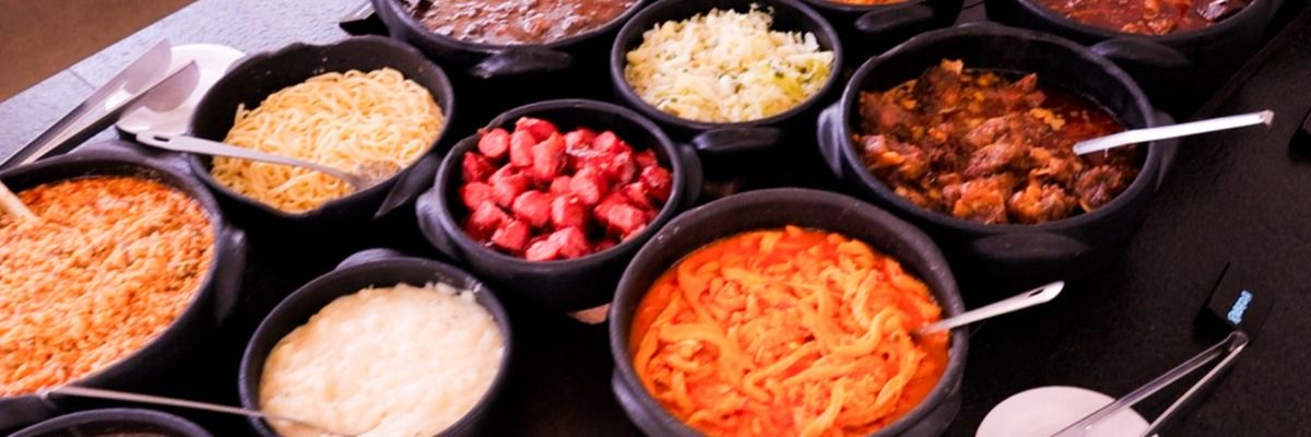 Acompanha arroz, feijão tropeiro, pirão, macarrão alho e óleo, salpicão Frango 2000mlArroz 2000mlFeijão em caldo Marmitex 750mlMacarrão Marmitex 750mlPirão Marmitex 750mlSalpicão Marmitex 750ml