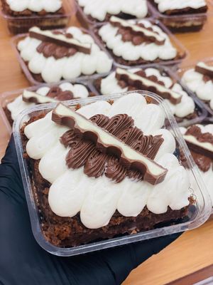 Brownie de chocolate com cobertura de ninho e Nutella.