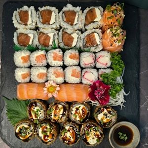 Uramaki Filadélfia (4pcs) Hossomaki Salmão (4pcs) Hot Filadélfia (4pcs) Niguiri Salmão (2pcs) Joe Tataki (2pcs)