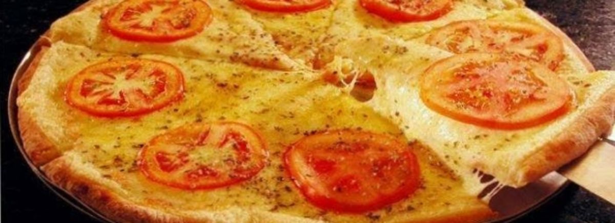 Deliciosa pizza de mussarela com fitias de tomate