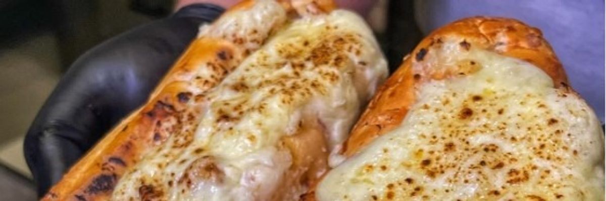 Uma Baguete incrível recheada com corações de galinha grelhados a 180°C, suculentos e temperados na medida certa, servidos com Pasta de alho deliciosa e uma camada irresistível de queijo mussarela derretido!