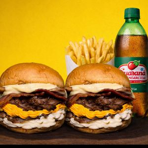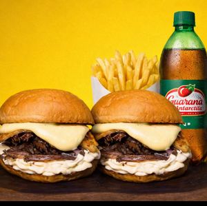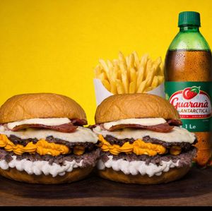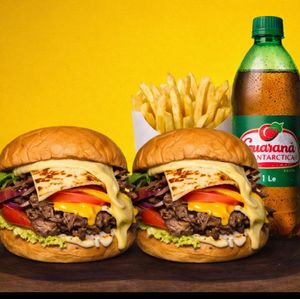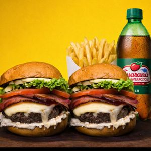 2 Varão Smash + batata frita M + refrigerante guaraná. Ideal pra dividir e matar a fome com muito sabor.
