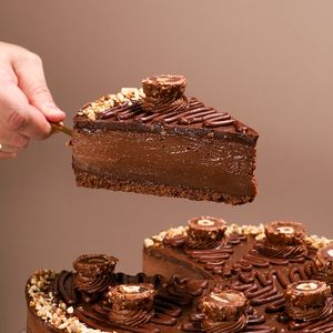 Massa de chocolate bem macia, duas camadas generosas de brigadeiro belga e uma camada cremosa de mousse de chocolate, finalizada com cobertura suave e aquele toque Kinder que derrete na boca. É intensa, cremosa, chocolatuda e simplesmente impossível comer sem fechar os olhos no primeiro pedaço. 😮💨✨ ⚠️ Aviso: alto risco de paixão à primeira mordida.