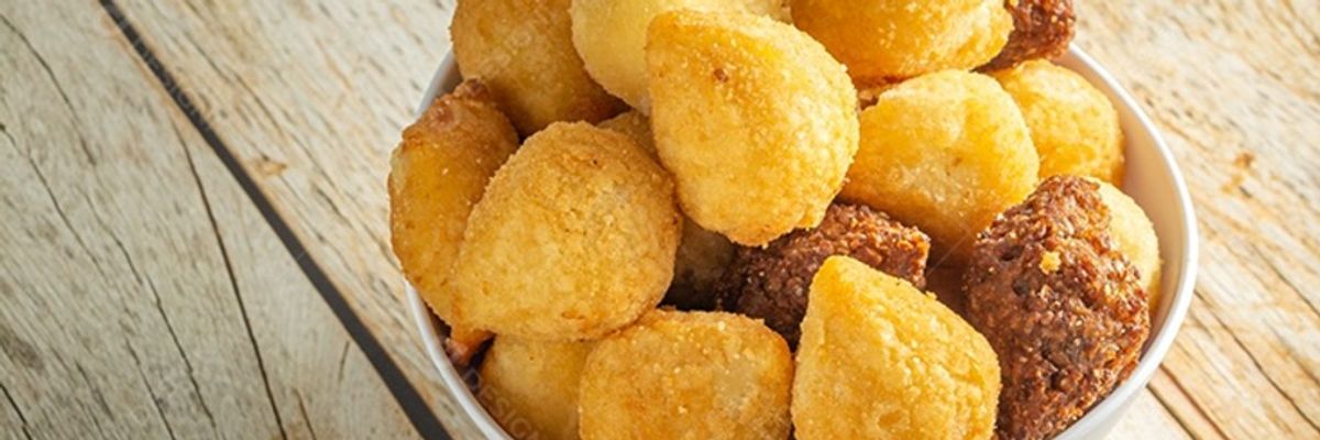 Croquete tamanho salgado de festa.