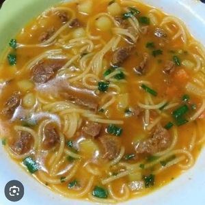 sopa de legumes,carne,e macarrão