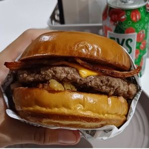 Pão brioche selado na chapa, molho especial, crispys de bacon, carne suculenta e fatias de cheddar.