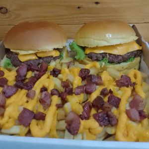 Pão macio com 2 hambúrgueres de picanha 90g, 2 ovos, 2 queijos, 2 presuntos, frango desfiado temperado, bacon crocante, alface, tomate, milho e batata palha. Um burguer completo, intenso e muito recheado!