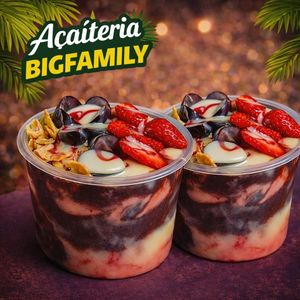 O verdadeiro rei do açaí chegou! É muito recheio, cremosidade e sabor em um só copo: Bigstorm 530ml – A tempestade de sabor que você esperava! Prepare-se para a explosão de cremosidade e frescor que só o Bigstorm tem! 🍧💨 530ml de açaí no ponto perfeito, com frutas frescas 🍓🍌, cremes. 5 acompanhamentos caprichados do jeitinho que você ama 🍓🍌🍪🥜🍬 2 coberturas sensacionais que derretem na boca 🍫🍯 É açaí pra comer sorrindo, até a última colherada! Se é pra se apaixonar, que seja pela explosão de sabor da Bigfamily!