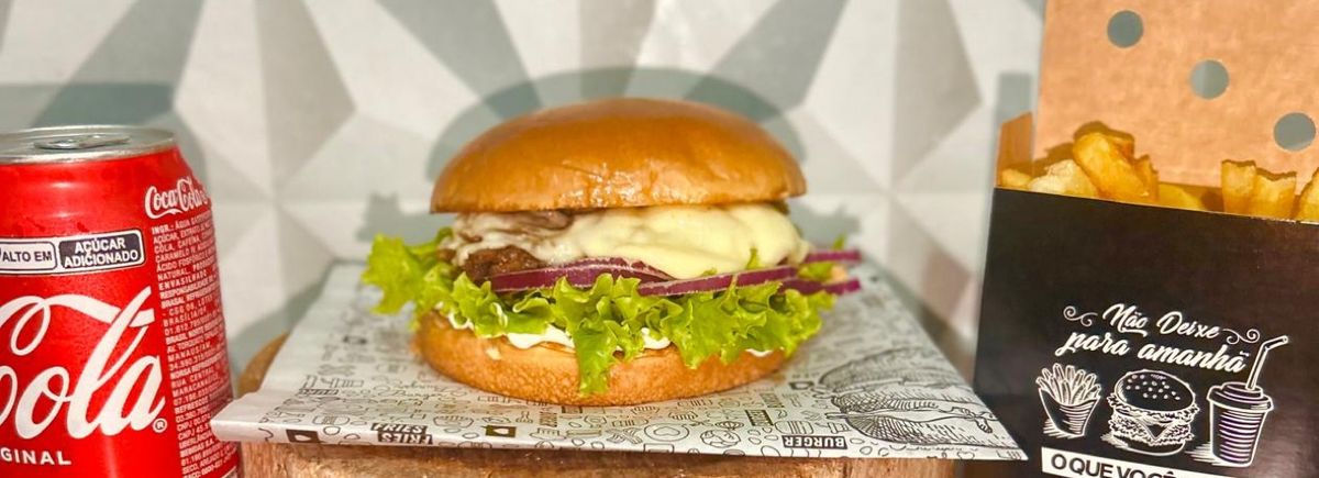 Pão, molho especial, hamburguer 180g, alface, tomate, cebola roxa e mussarela