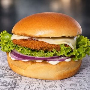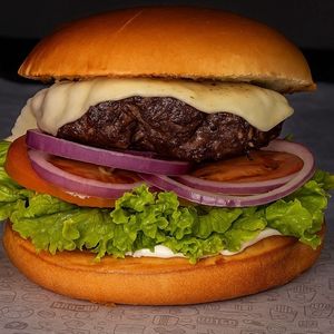 Pão, molho especial, 3 hambúrguer 80g, alface, cebola roxa, mussarela ou cheddar